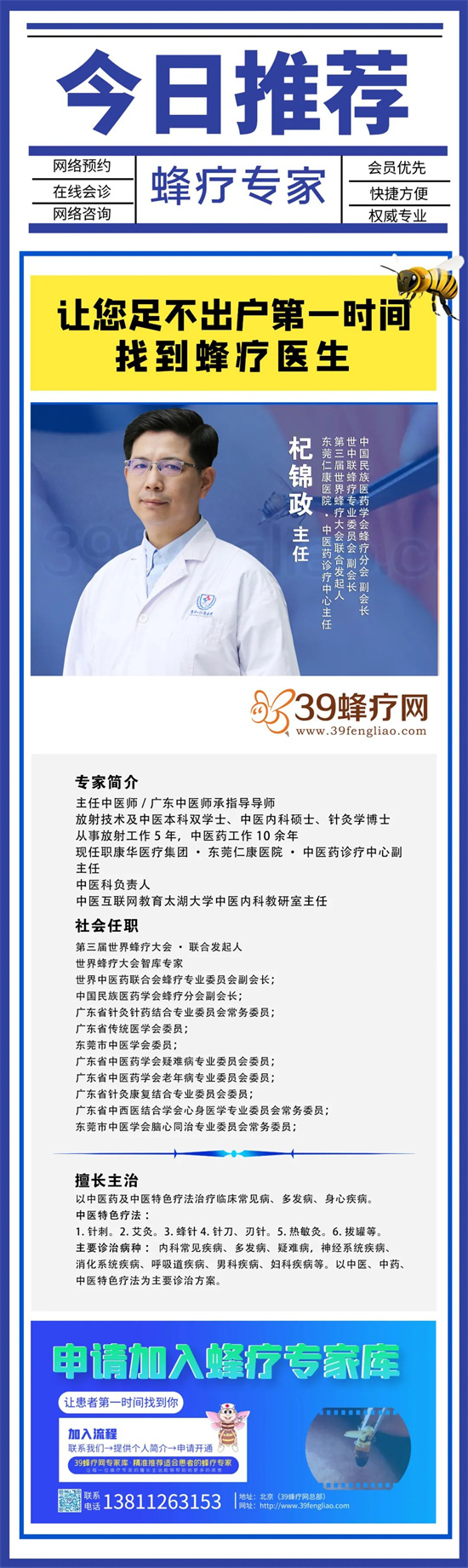 预约专家:周颖芳、杞锦政、阿布力米提·阿布来提、吕立国、方芳、李珊芸、陈文滨、胡赟、熊俊、王钰婷、崔韶阳、陈清一、张燕、姬正跃、马高祥、安香珍、刘红、佘瑞涛、刘忠玲、陆勇刚、董涛、王锡、曾伟、柴选文、倪珊、苏小军、袁凯、李重山、陈瑜、陈美景、傅敏、徐荣梅、吴晓芳、利庆欣、朱景智、韩光、陆岳太、陆九妹、陈世云、邓少东、胡友樾、黎志光、康平利、刘艳芳、吴红波、张雪娟、李春萍、张崇坤、张秋钦、邹旭凤、赵庆兰、杨敬芳、刘立群、刘启贤、高羽、周洪杰、周忠等上百位一线知名蜂疗临床专家和杰出蜂疗保健专家,将会在39蜂疗网上为更多疾患与网友提供专业的蜂疗治疗与康复咨询服务。