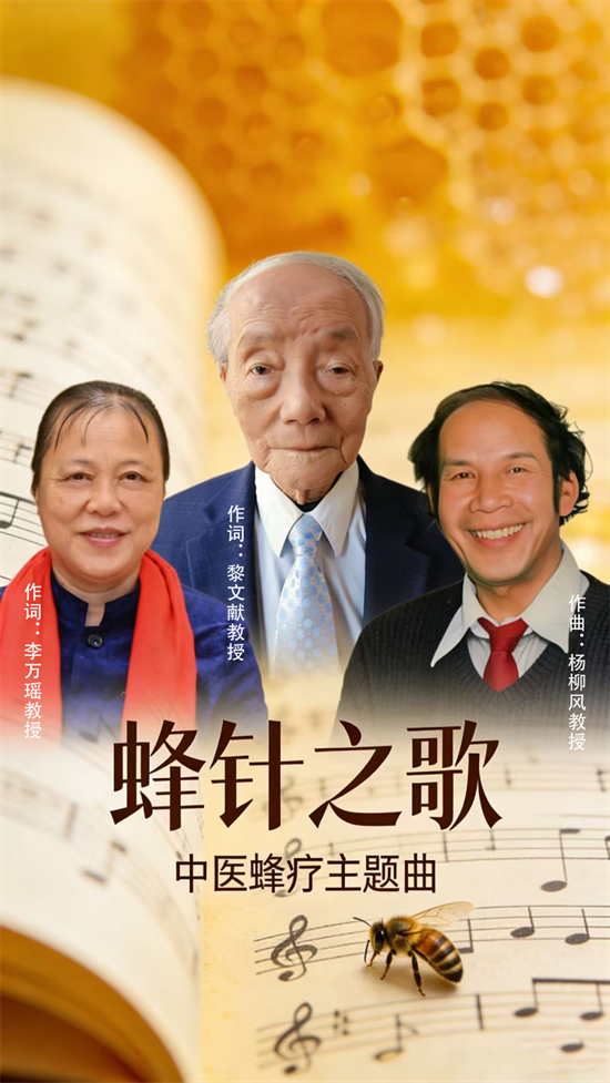 【39蜂疗网】记者 讯 在第六届世界蜂疗大会上,中医蜂疗领域迎来蜂疗文化传播最强音——国际上首支以蜂疗为主题的中医蜂疗主题曲《蜂针之歌》正式发布,并被收录于年度蜂疗大会论文集。标志着中医蜂疗在文化传播与专业融合方面迈出了重要一步。该曲由世界中联蜂疗专业委员会会长李万瑶教授、知名中医专家黎文献教授共同作词;音乐家杨柳风教授作曲,标志着中医蜂疗在文化传播与专业推广上迈出创新步伐。