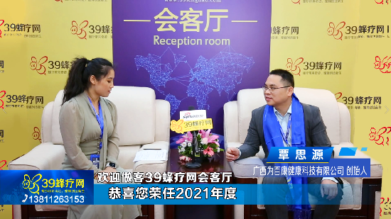 【39蜂疗网】记者 讯 本来无望的事,大胆尝试,往往能成功。于2021年10月22日-24日由世界中医药学会联合会蜂疗专业委员会、中国民族医药学会主办的蜂界年度盛会——第三届世界蜂疗大会暨世界中联蜂疗专业委员会换届大会暨第四届学术年会,中国民族医药学会蜂疗分会换届会议暨2021年学术年会在中国北京盛大召开!广西为百康健康科技有限公司 创始人覃思源先生受邀做客第三届世界蜂疗大会39蜂疗网会客厅。