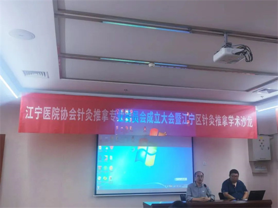 2024年7月13,在南京市江宁区中医院的会议室,江宁区医院协会针灸专业委员会正式成立,在其后举行的学术沙龙,来自南京医科大学附属逸夫医院中医科胡赟主任做了《蜂针疗法的应用与发展》的主题讲座。