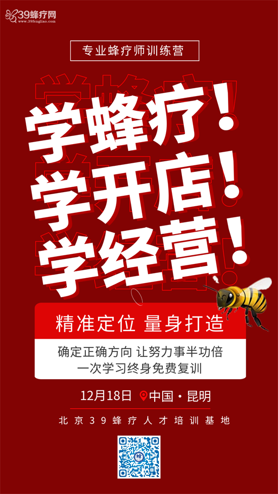 39蜂疗高级研修班(总)第48期即将在云南昆明开学,本期学习班由云南省中医药学会培训中心、昆明市五华区岐黄职业培训学校联合主办,世界中医药学会联合会培训结业证书,并授予Ⅱ类学分6 分。限招50名,共筑中医蜂疗新时代!