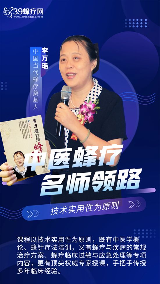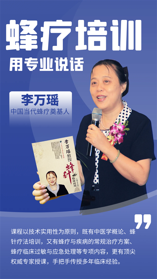 我们诚挚邀请广大医疗机构、中医蜂疗爱好者及有志于投身中医蜂疗事业的爱好者踊跃报名,共同学习、交流进步!作为中医蜂疗领域的领军品牌,39蜂疗网肩负国家蜂疗学会-中医蜂疗人才培养的重任。通过开设中医蜂疗技术标准化规范操作技能提升培训班,致力于为广大医疗机构、人才梯队建设、人岗匹配优化、临床应用安全提高提供强有力的专业技术支撑和人才保障。在这个时代的机遇下,中医蜂疗人展现出了更为旺盛的生机活力。我们坚信,通过本次学习班的培训,学员们将能够掌握更为精湛的中医蜂疗技术,提升执业水平和能力,为人民群众提供更为安全、满意、高效的蜂疗医疗与蜂疗保健卫生服务。